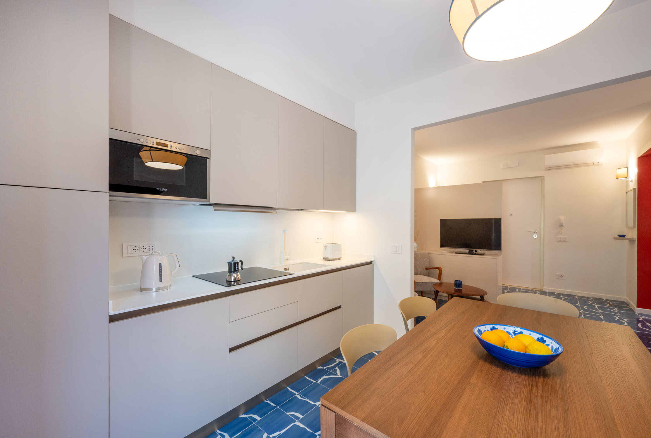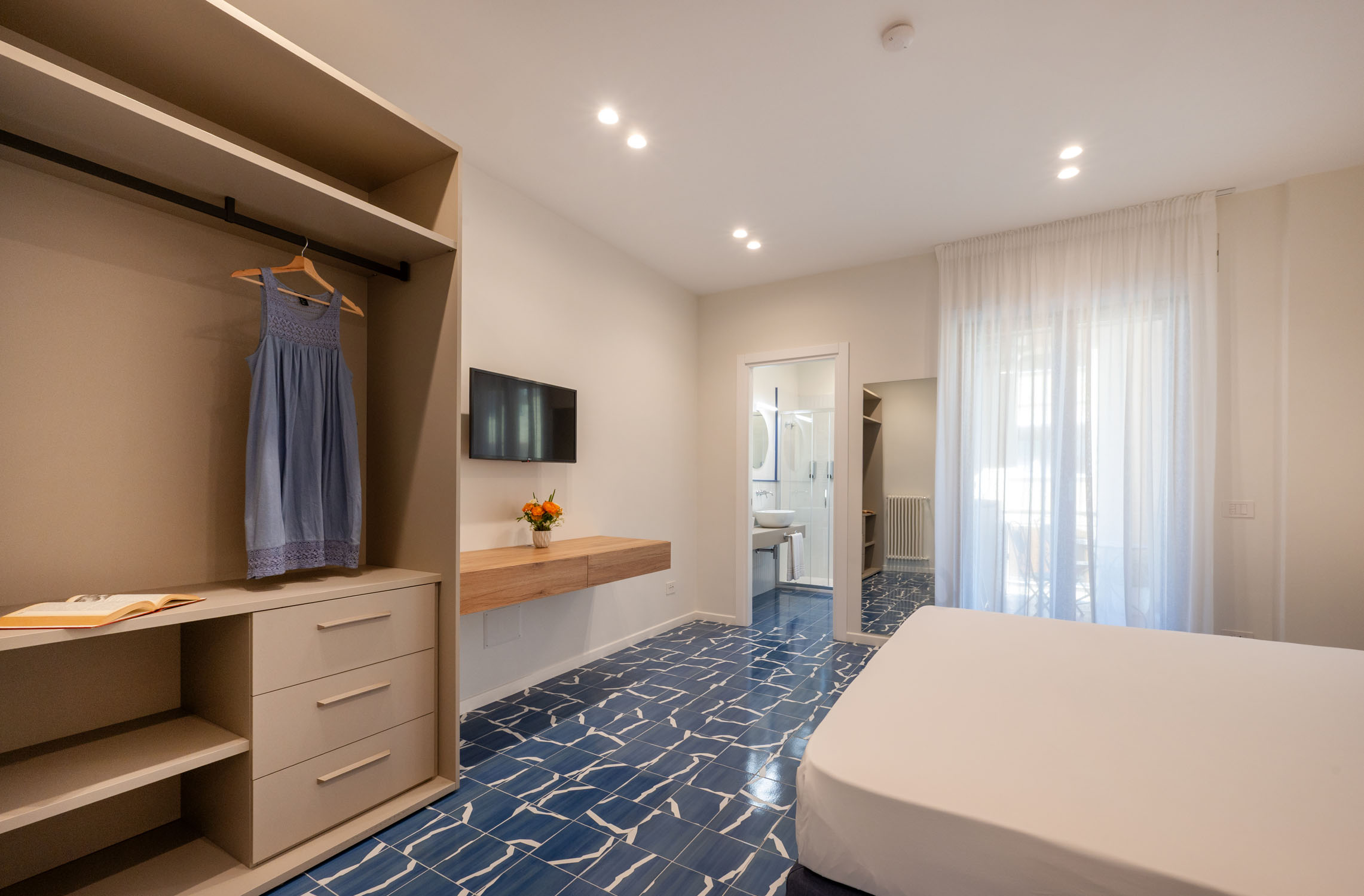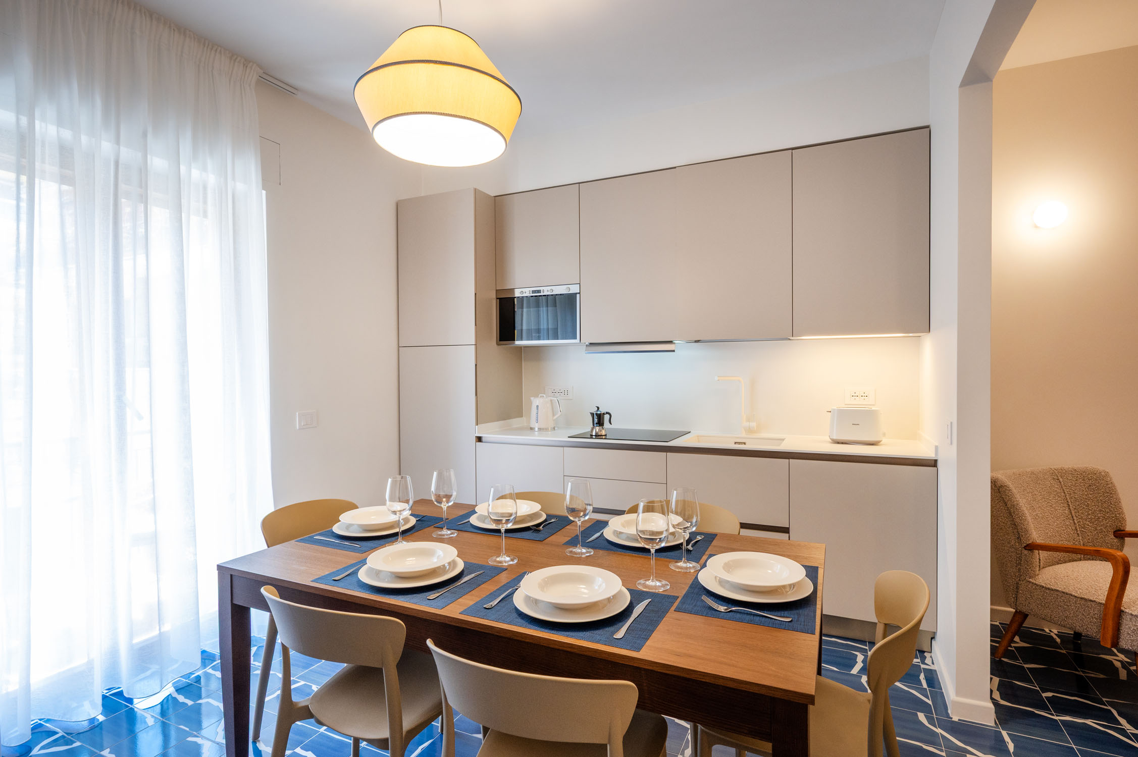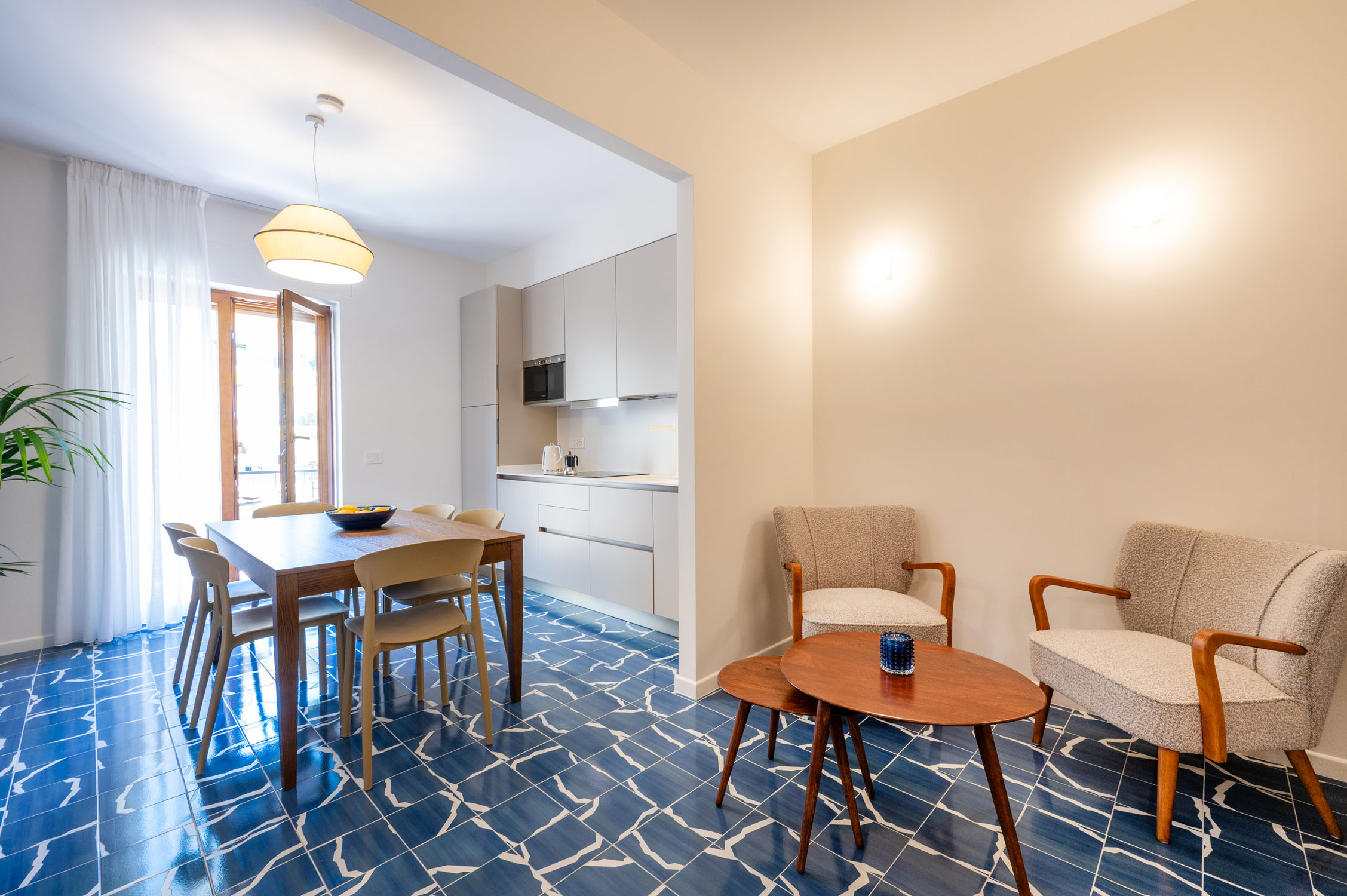Three private balconies extend the living space outdoors, offering a peaceful retreat in the heart of Sorrento, ideal for a morning coffee in the sun or a glass of wine in the evening breeze.