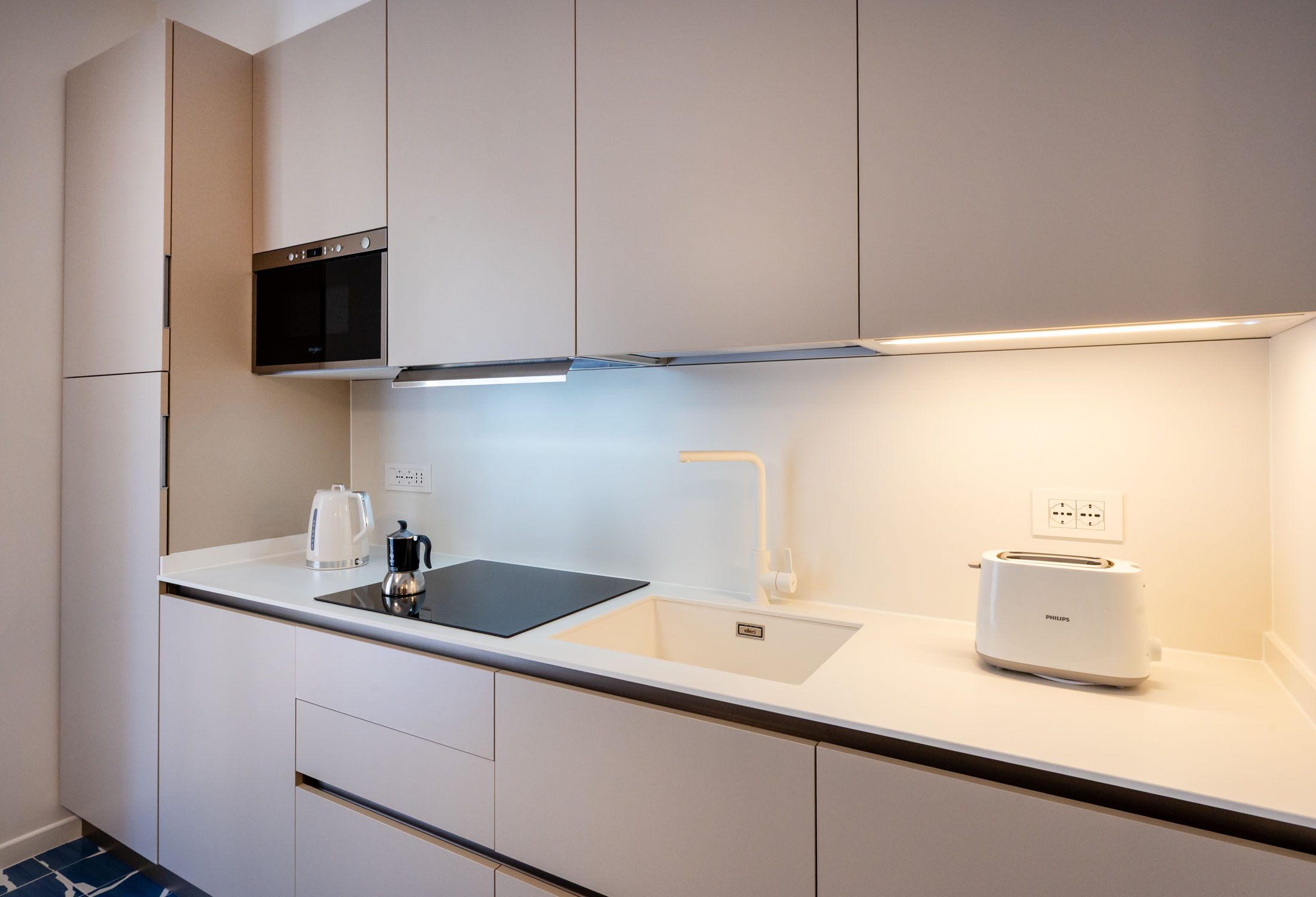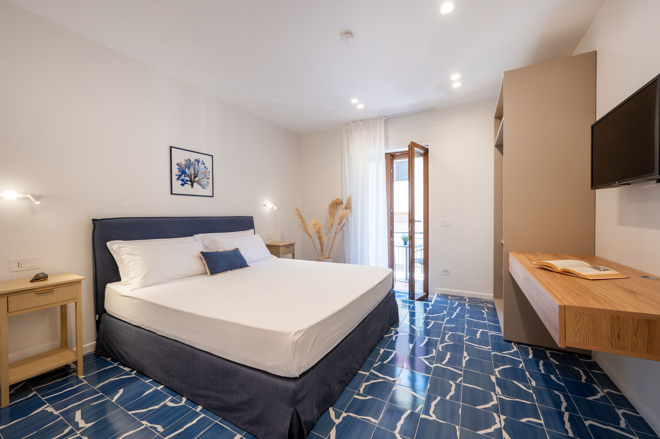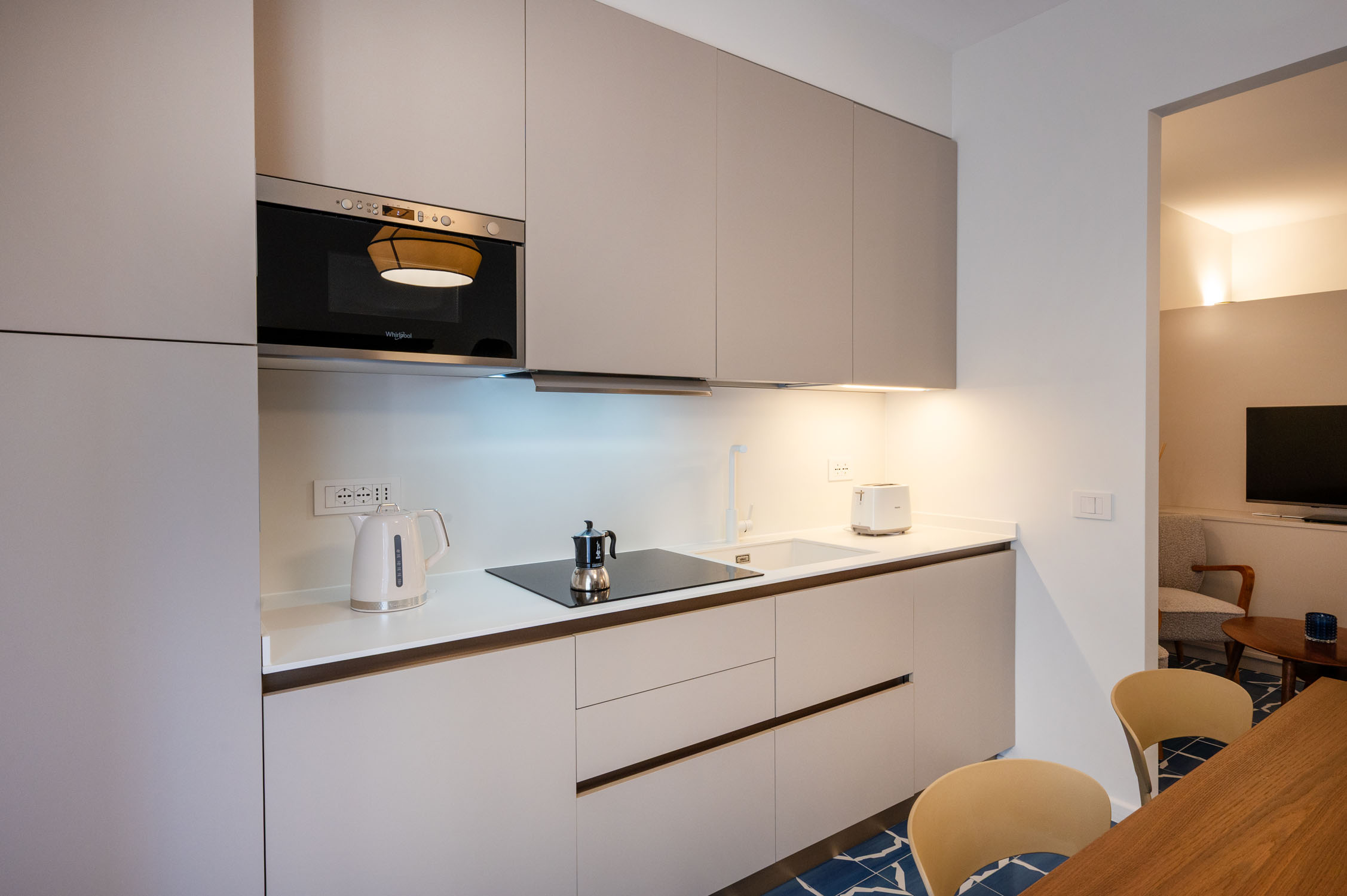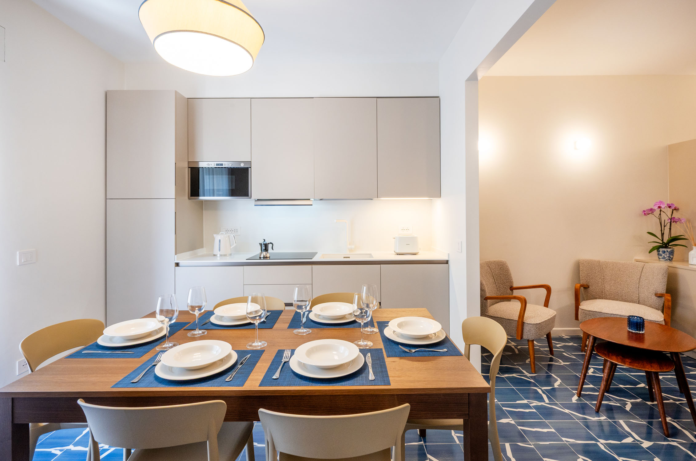 Three private balconies extend the living space outdoors, offering a peaceful retreat in the heart of Sorrento, ideal for a morning coffee in the sun or a glass of wine in the evening breeze.