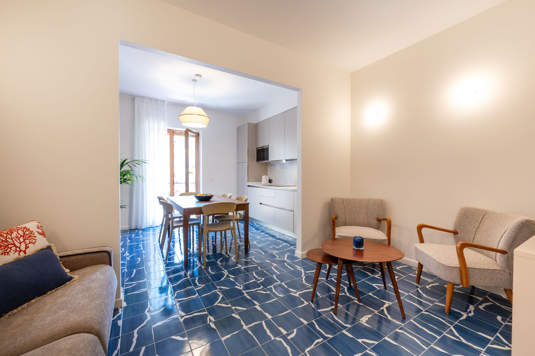 Welcome to The Coral House, an elegant, light-filled apartment set in a quiet yet central area of Sorrento, just a ten-minute walk from the train station and about fifteen minutes from the beaches and harbour. Its location allows easy access to Capri, Pompeii, and the Amalfi Coast, while preserving the authentic character of the surrounding neighbourhood.